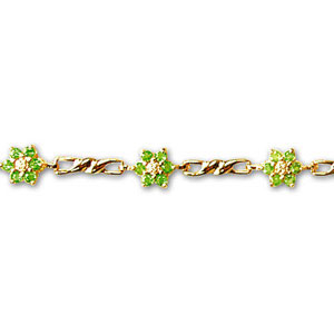 Браслет из красного золота 585 пробы с 8 бриллиантами и 48 изумрудами