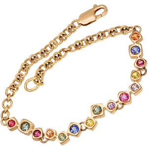 Легкий радужный браслет из желтого золота 585 пробы с переливом 15 разноцветных сапфиров. !!!!33333!!!!!
