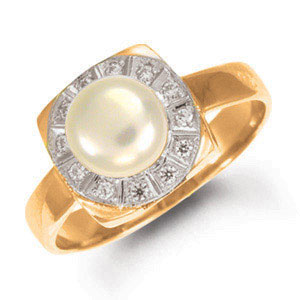 Кольцо из красного золота 585 пробы с 1 жемчугом и 12 цирконами !!!!33333!!!!!