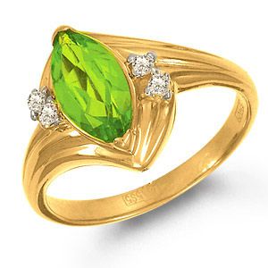 Кольцо из желтого золота 585 пробы с гранатом и цирконами