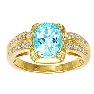 Кольцо из красного золота 585 пробы с 1 голубым топазом и 24 цирконами