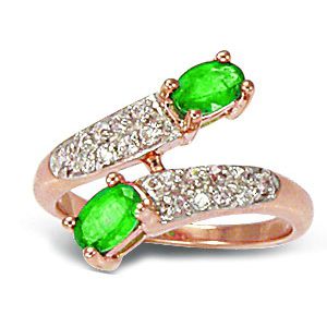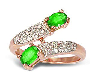 Кольцо из красного золота 585 пробы с 2 изумрудами и 18 цирконами