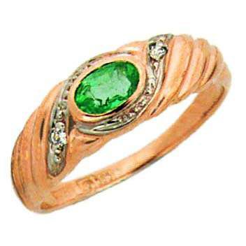 Кольцо из красного золота 585 пробы с 1 изумрудом и 2 цирконами