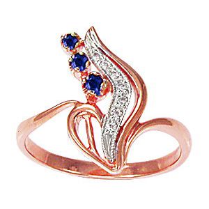 Кольцо из красного золота 585 пробы с 3 сапфирами и 7 цирконами
