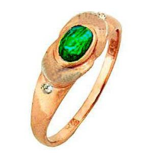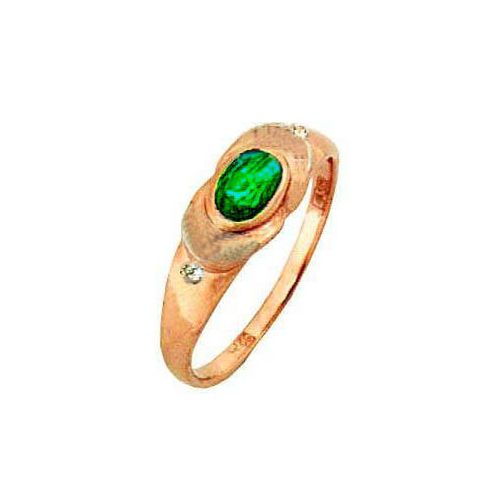 Кольцо из красного золота 585 пробы с 1 изумрудом и 2 цирконами