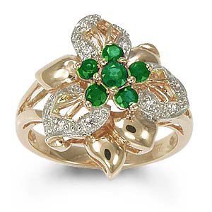 Кольцо из красного золота 585 пробы с 12 бриллиантами и 6 изумрудами