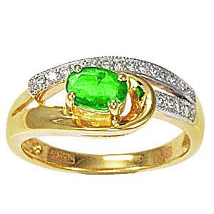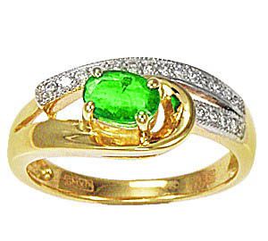Кольцо из желтого золота 585 пробы с 18 бриллиантами и 1 изумрудом
