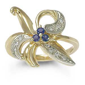 Кольцо с бриллиантами и сапфирами