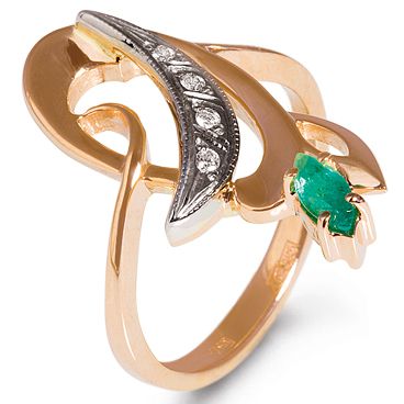 Кольцо из красного золота 585 пробы с 4 бриллиантами и 1 изумрудом !!!!33333!!!!!