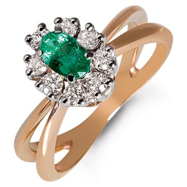 Кольцо из комдинированного золота 585 пробы с 8 бриллиантами и 1 изумрудом
