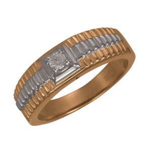 Кольцо из комбинированного золота 585 пробы с 1 бриллиантом