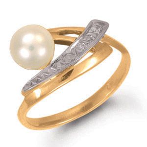 Кольцо из комбинированного золота 585 пробы с 1 белой жемчужиной и 3 цирконами