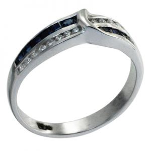 Кольцо из белого золота 585 пробы с 16 бриллиантами и 12 сапфирами