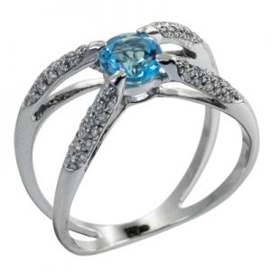 Кольцо с бриллиантами и голубым топазом