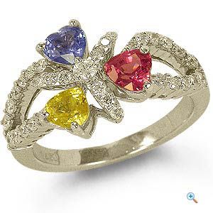 Кольцо с бриллиантами и цветными сапфирами