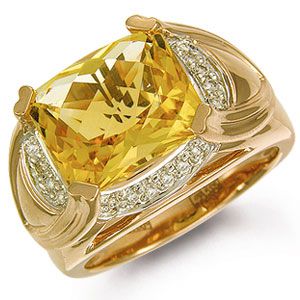 Кольцо из красного золота 585 пробы с 12 бриллиантами и 1 цитрином