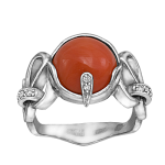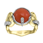 Кольцо из комбинированного золота 585 пробы с 10 бриллиантами и 1 кораллом