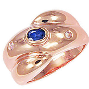 Кольцо из красного золота 585 пробы с 1 сапфиром и 2 цирконами
