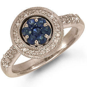 Кольцо из белого золота 585 пробы с 30 бриллиантами и 7 сапфирами