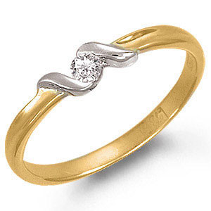 Кольцо из комбинированного золота 585 пробы с 1 бриллиантом