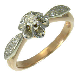 Кольцо из комбинированного золота 585 прбы с 7 бриллиантами !!!!33333!!!!!