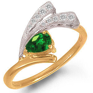 Кольцо из комбинированного золота 585 пробы с 6 бриллиантами и 1 изумрудом !!!!33333!!!!!