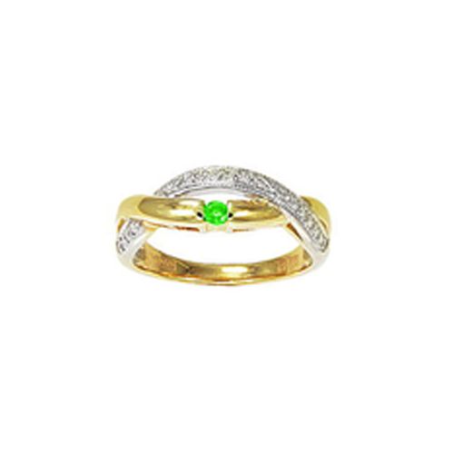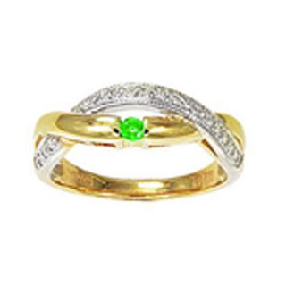 Кольцо из комбинированного золота 585 пробы с 1 изумрудом и 17 цирконами