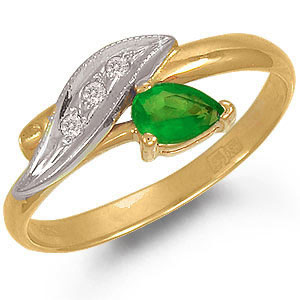 Кольцо из комбинированного золота 585 пробы с 3 бриллиантами и 1 изумрудом