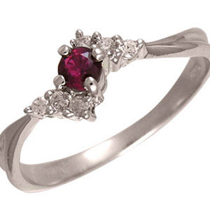Кольцо из белого золота 585 пробы с 1 рубином и 6 цирконами