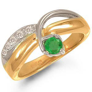 Кольцо из комбинированного золота 585 пробы с 5 бриллиантами и 1 изумрудом