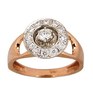 Кольцо из комбинированного золота 585 пробы с 13 бриллиантами