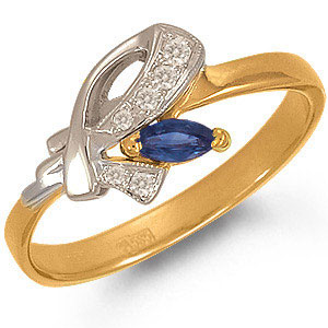 Кольцо из комбинированного золота 585 пробы с 6 бриллиантами и 1 сапфиром
