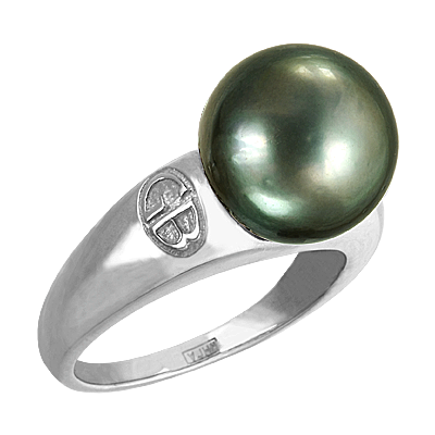 Кольцо из белого золота 585 пробы с 1 черной жемчужиной