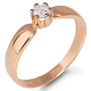 Кольцо из красного золота 585 пробы с 1 бриллиантом