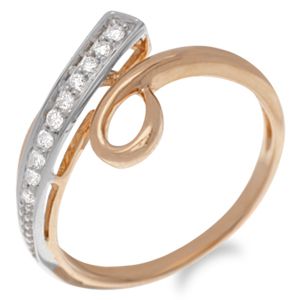 Кольцо из комбинированного золота 585 пробы с 10 бриллиантами