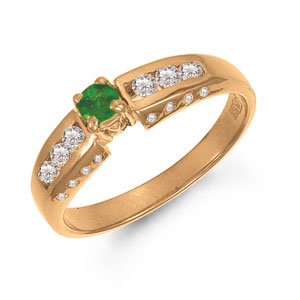Кольцо из красного золота 585 пробы с 1 изумрудом и 22 цирконами
