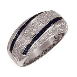 Кольцо из белого золота 585 пробы с 69 бриллиантами и 32 сапфирами