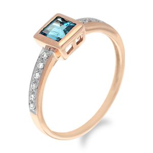 Кольцо из красного золота 585 пробы с 12 бриллиантами и 1 голубым топазом