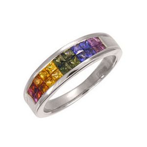 Кольцо с цветными сапфирами и рубинами