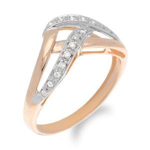 Кольцо из комбинированного золота 585 пробы с 16 бриллиантами