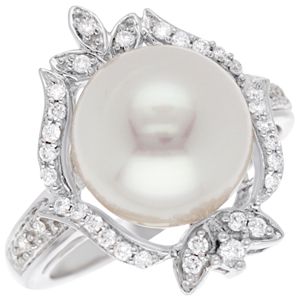 Кольцо из белого золота 585 пробы с 36 бриллиантами и 1 белой жемчужиной !!!!33333!!!!!