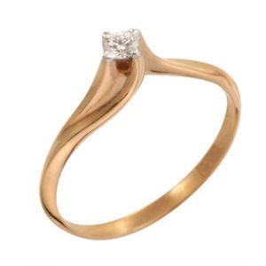 Кольцо из красного золота 585 пробы с 1 бриллиантом !!!!33333!!!!!