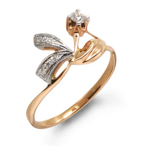 Кольцо из красного золота 585 пробы с 6 бриллиантами