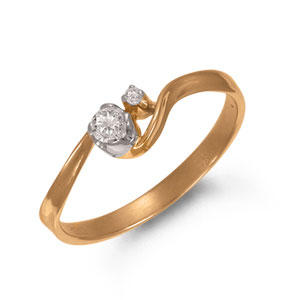 Кольцо из красного золота 585 пробы с 2 бриллиантами