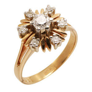 Кольцо из красного золота 585 пробы с 7 бриллиантами