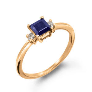 Кольцо из красного золота 585 пробы с 2 бриллиантами и 1 сапфиром