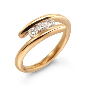 Кольцо из красного золота 585 пробы с 3 бриллиантами