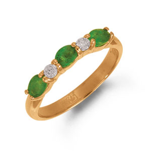 Кольцо из красного золота 585 пробы с 2 бриллиантами и 3 изумрудами