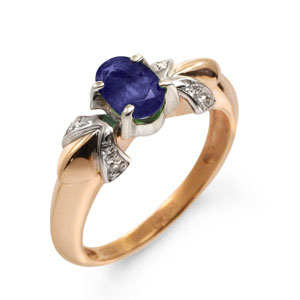 Кольцо из комбинированного золота 585 пробы с 8 бриллиантами и 1 сапфиром !!!!33333!!!!!