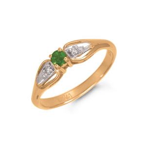 Кольцо красного золота 585 пробы с 1 идумрудом и 2 цирконами !!!!33333!!!!!